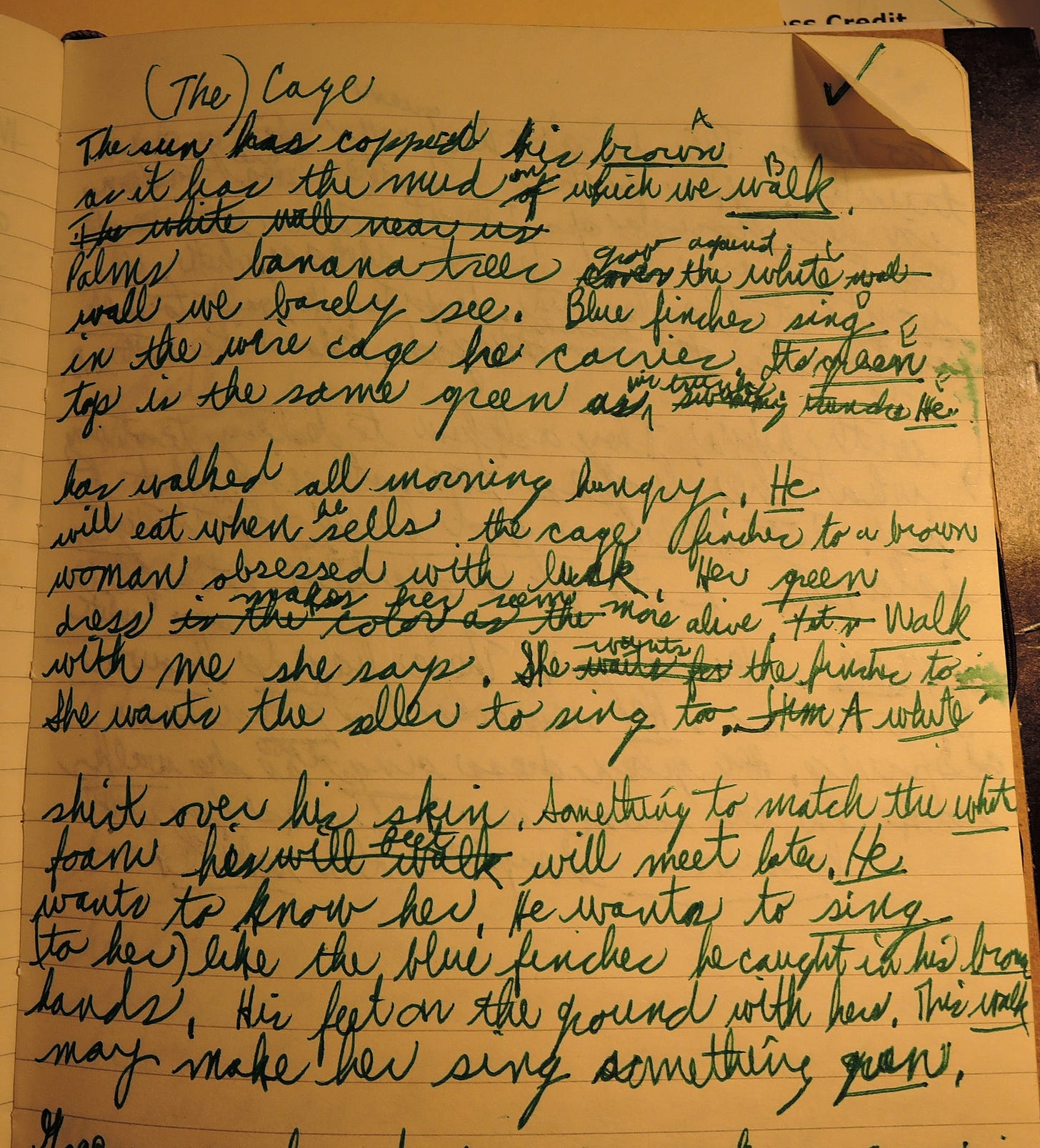 “The Cage” made itself know to me in Brazil. On a muddy street, I saw a man carrying a bird in a cage. That image stayed with me. After a few weeks, I began writing the poem.