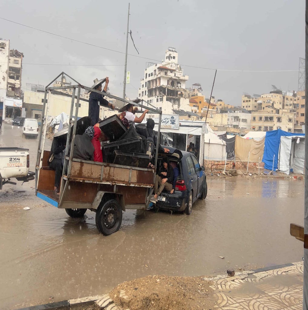 Street after street, the same bitter scene played out: women carrying wet blankets, children dragging school bags filled with clothes instead of books. They did not say goodbye to the passing year; they said goodbye to walls and houses full of memories, and streets they may never return to.