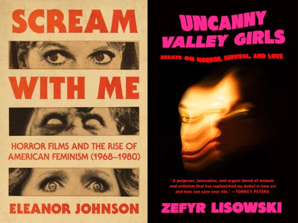 A review of Uncanny Valley Girls: Essays on Horror, Survival, and Love (Harper Perennial 2025) by Zefyr Lisowski and Scream with Me: Horror Films and the Rise of American Feminism (1968-1980) (Atria 2025) by Eleanor Johnson.