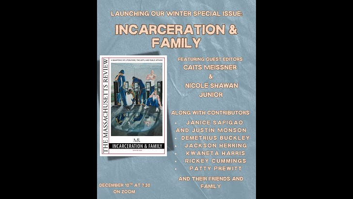 Last Wednesday, December 10th, we hosted a Zoom launch party for our new Winter Special Issue, Incarceration & Family.